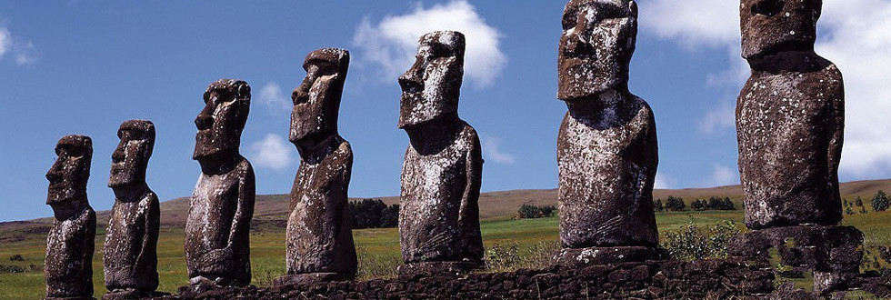 复活节岛是南太平洋中的一个岛屿,当地的语言称拉帕努伊岛,位于智利以西外海 3000公里以外。复活节岛是世界上最与世隔绝的岛屿之一,离其最近有人定居的皮特凯恩群岛也有两千多公里距离。该岛形状近似呈一三角形,由三座火山组成,与胡安·费尔南德斯群岛并为智利在南太平洋的两个属地。复活节岛以数百尊充满神秘的巨型石像闻名于世。复活节岛的英文名称为Easter Island,波利尼西亚文意为世界之脐。该岛孤悬於海上,西距皮特肯岛(Pitcairn Island)1,900公里(1,200哩),东距智利西岸3,540公里(2,200哩)。岛长23公里(14哩),宽11公里(7哩),呈三角形, 面积163平方公里(63平方哩);其最高点特雷瓦卡山(Mount Terevaka)海拔600公尺(1,969呎)。复活节岛是世界遗产,为历史上最隔绝的有人居住小岛之一。复活节岛基本资料:面积:117平方公里人口:3791(2002年统计)人种:波利尼西亚人种语言:拉帕努伊语宗教:基督教时区:西六区首府:杭加罗阿形成原因:复活节岛是在大约一百万年前由海底的三座火山喷发形成的。复活节岛上绝对不缺少引人注目的景点:当地人每天都会赶到Lapérouse海湾(以一位1786年曾借道于此的伟大航海家命名)捕鱼,然后再运到附近码头上过秤;Anakena和Ovahe的海滩带有浓重的波利尼西亚气息,高大的椰子树、玫瑰色的沙滩和神秘的洞穴都是游人钟爱的去处;复活节岛上的土著人喜欢在平静的Rano Kau火山湖中沐浴,而火山坡上则种满了甘蔗、鳄梨树和香蕉树等作物;岛的西南部还有一座Orongo塔,当年帕斯古安宗族的酋长曾经在那里祭拜过鸟人;在小岛周围300米的水下,金枪鱼、鼬鲛和鱼分享着全球最纯净的海水。